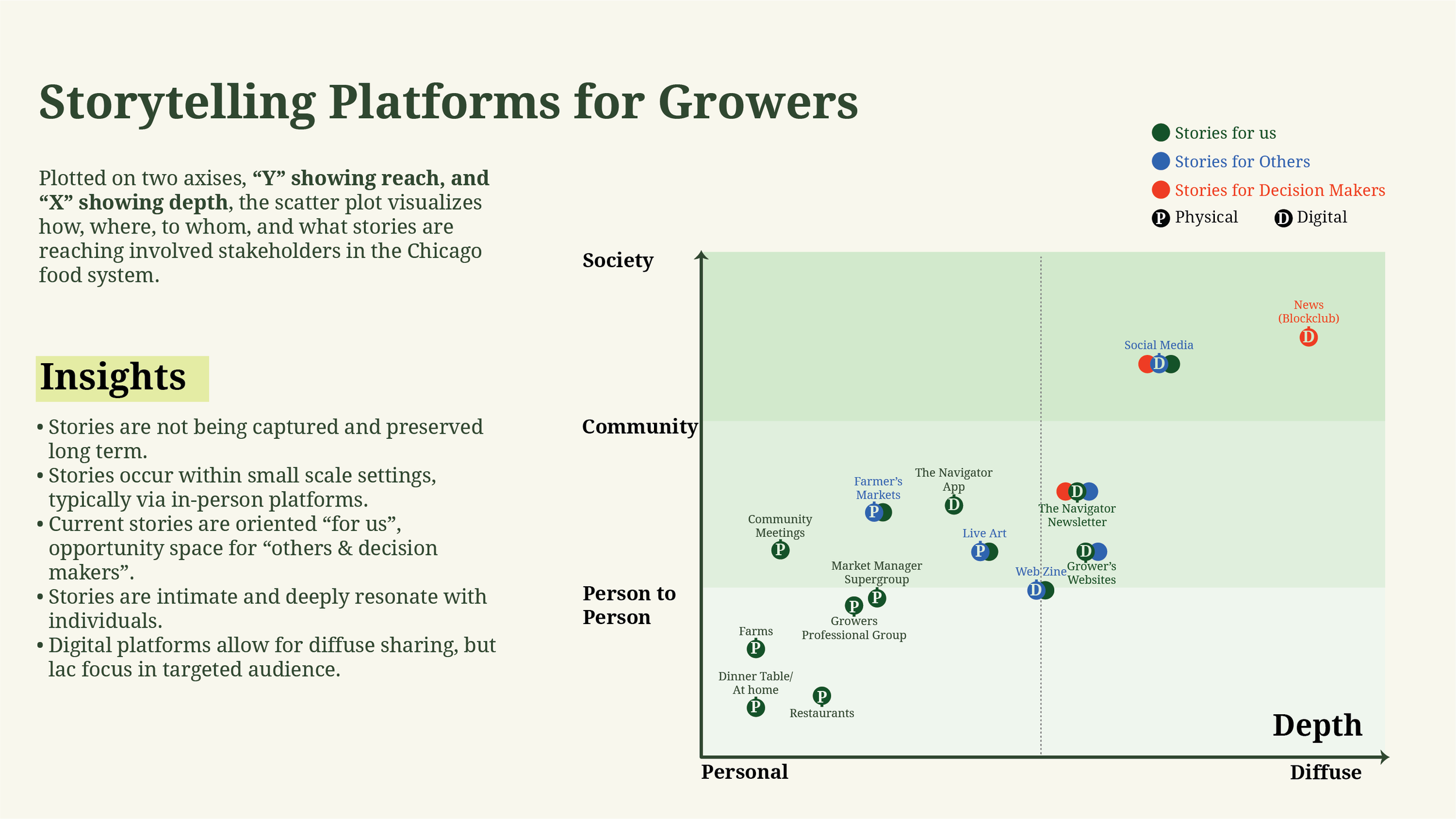 Initially, we conducted interviews with a wide range of stakeholders integral to the community, including farmers, chefs, and farmers' market managers, to gain insights into the local food systems. In addition to these interviews, we carried out secondary research to grasp the current state and explore potential storytelling approaches that could benefit the Navigator.